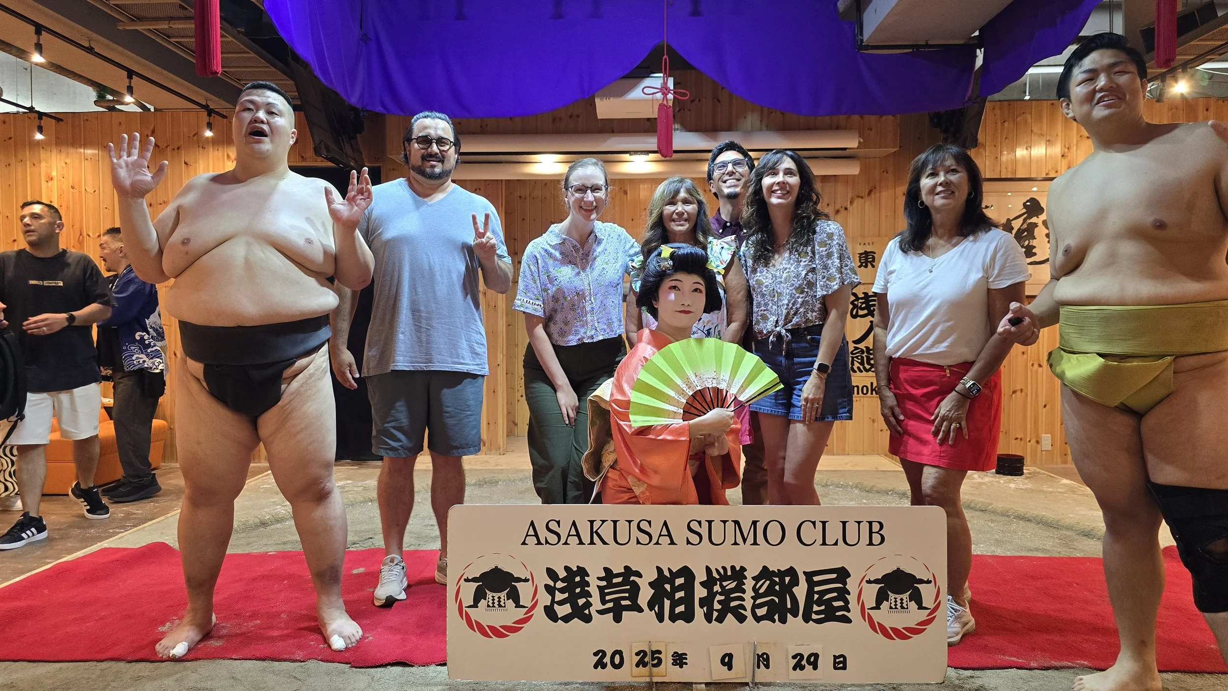Let the record show that we could have spent an entire week in Tokyo. There is simply so much to do! We hit a variety of shopping spots- like a 12 story paper supplies store 😍- before ending the day in Asakusa for Sumo Wrestling. Asakusa was a neighborhood with lots of older, traditional structures right in the middle of modern, urban setting. Very cool, very artsy. One block was skyscrapers, the next was a temple complex! The sumo wrestling event included all-you-can-eat chicken hot pot and a family picture with the wrestlers. (Very a-la Dixie Stampede, haha) I loved the recycled kimono store, too. Another long, great day!